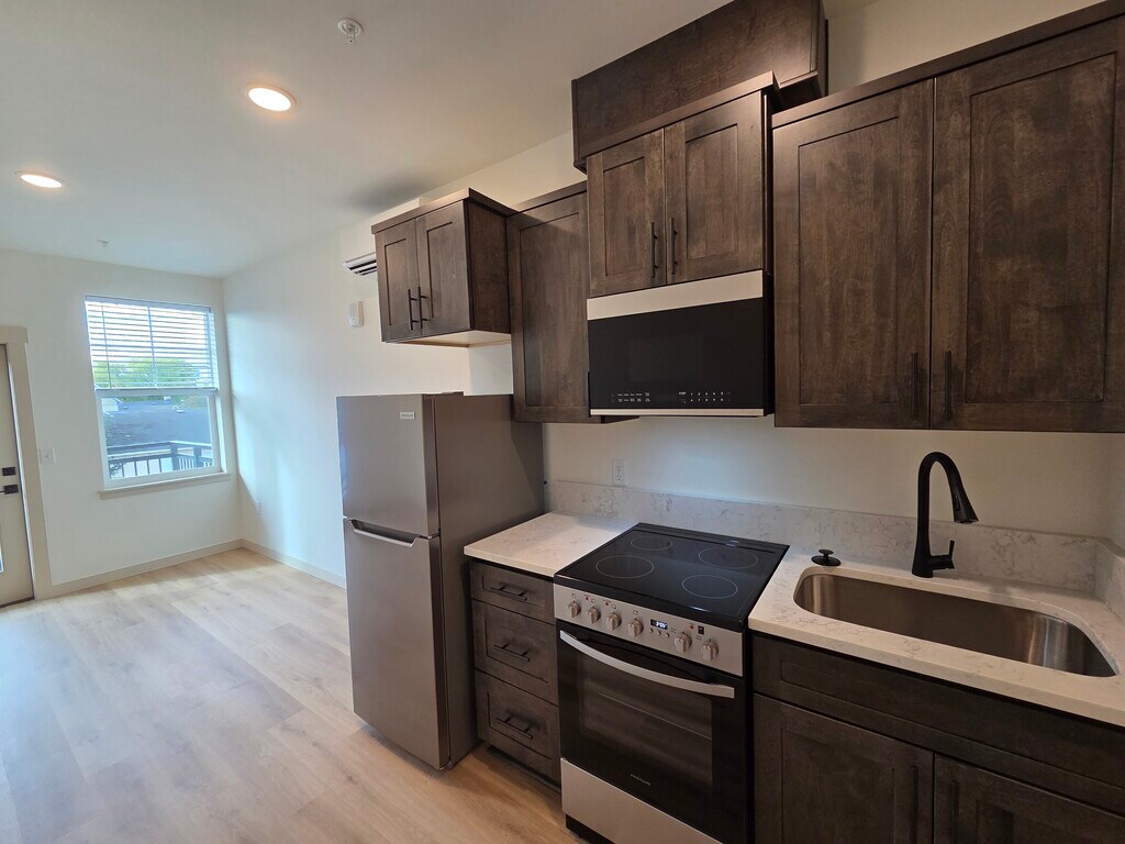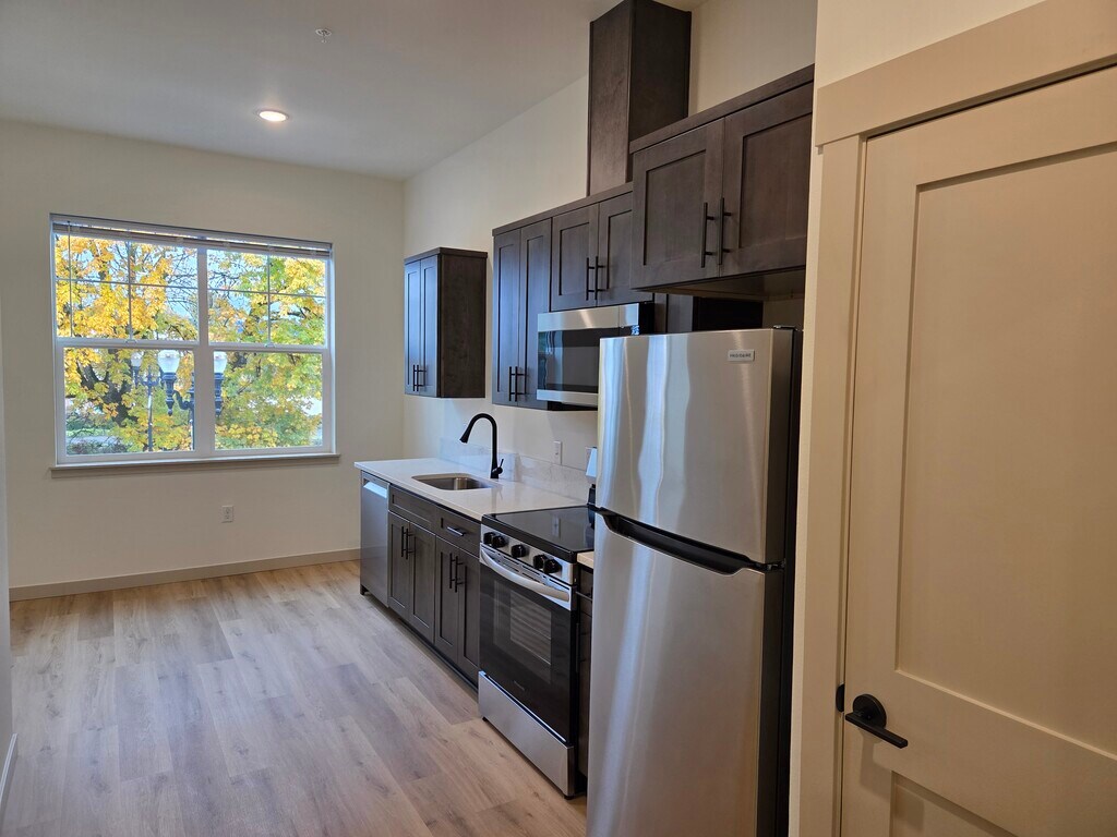 Unit 206 – Modern Studio at Hill’s Town ApartmentsSmart, stylish, and efficient—offers open-concept living with luxury vinyl plank flooring, quartz countertops, stainless-steel appliances, and in-unit washer/dryer. Enjoy secure building access, bike storage, and walkability to downtown Independence shops, cafes, and Willamette River trails. Pet-friendly, energy-efficient, and designed for comfort and convenience. Schedule your tour today and see why H