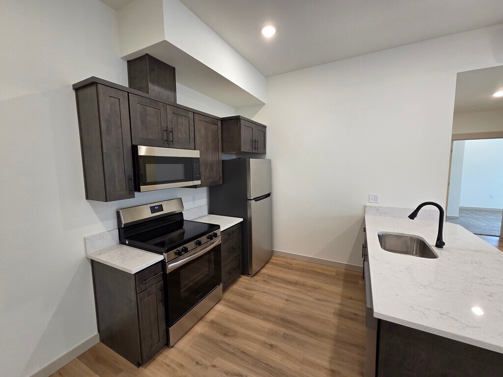 Unit 206 – Modern Studio at Hill’s Town Apartments-Smart, stylish, and efficient—offers open-concept living with luxury vinyl plank flooring, quartz countertops, stainless-steel appliances, and in-unit washer/dryer. Enjoy secure building access, bike storage, and walkability to downtown Independence shops, cafes, and Willamette River trails. Pet-friendly, energy-efficient, and designed for comfort and convenience. Schedule your tour today