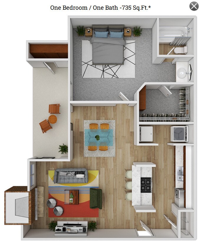 1 Bed, 1 Bath, 735 sq ftAvailable NowModel Gallery