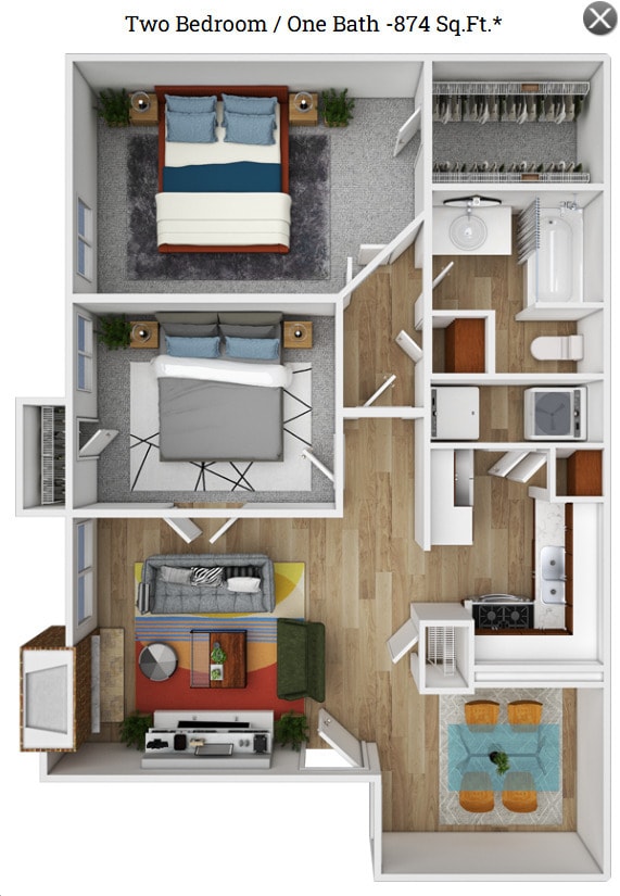 2 Beds, 1 Bath, 874 sq ftAvailable NowCheapest 2 BedroomThis is the cheapest 2 Bedroom at this PropertyModel Gallery