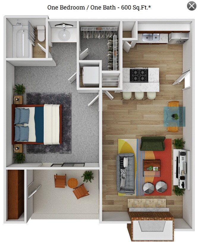 1 Bed, 1 Bath, 600 sq ftAvailable NowCheapest 1 BedroomThis is the cheapest 1 Bedroom at this PropertyModel Gallery