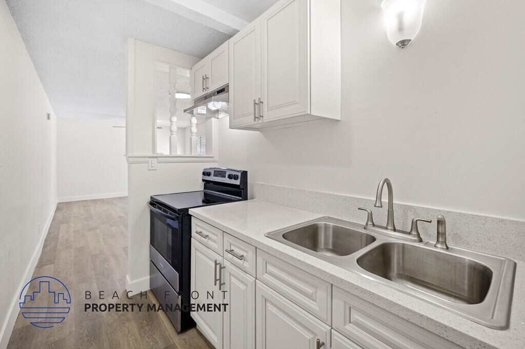 Discover Comfort and Convenience at 4830 Palm Avenue, Riverside This charming two-story property boasts a well-maintained courtyard filled with palm trees and lush tropical landscaping, creating a serene and inviting atmosphere. The classic stucco exterior is complemented by wide, paved walkways, ensuring easy access throughout the property. Some units feature window-mounted air conditioning units to keep residents cool and comfortable in the California sun. Inside, the living spaces are bright and refreshed with modern wood-style plank flooring. The kitchen is outfitted with sleek white cabinetry, stainless steel double sinks, and black electric appliances, including a stove and range hood. The semi-open layout connects the kitchen to the spacious living area, which is filled with natural light thanks to large windows. Ceiling fans enhance the comfort, providing continuous airflow. Bathrooms feature updated fixtures, a shower/tub combo with sliding glass doors, and energy-efficient lighting. The bedroom offers plenty of natural light and continues the modern, cohesive design with wood-style flooring. The property also includes an on-site laundry room equipped with multiple washers and dryers, providing added convenience for residents. Covered parking is available under carports located within the property, offering protection for vehicles and easy access to units. 4830 Palm Avenue offers a combination of comfort and modern living, surrounded by greenery and thoughtfully designed communal areas that create a welcoming environment for all residents.
