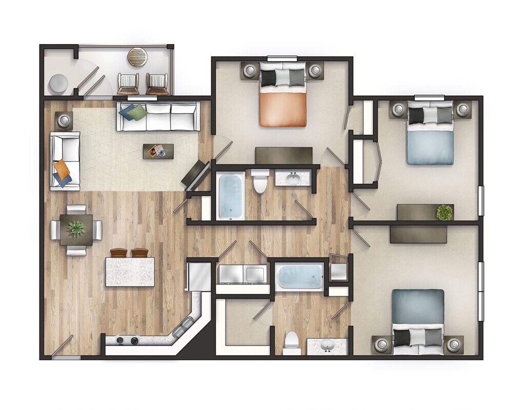 The Ashley - Floorplan 2 Apartment Unit: 5205Apartment Model: The Ashley$1,5951 Bedroom, 1 Bath, 901 sq ftAvailable Now2 Bedrooms
