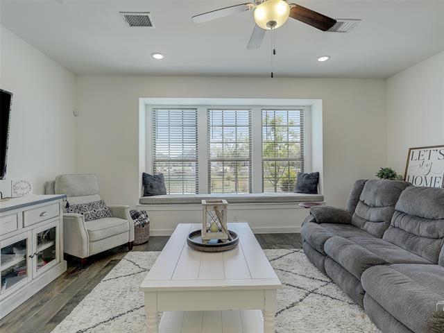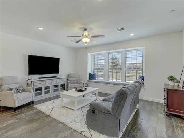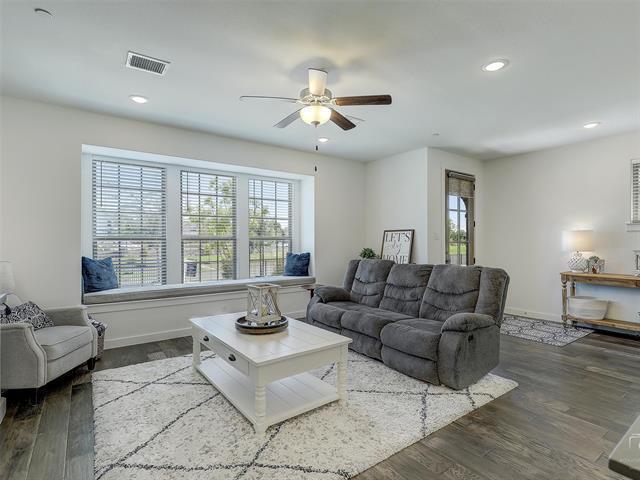 You'll love this charming corner townhome with a floor plan showcasing 3 bedrooms, 2.5 Baths, 1 Living, 1 Dining, Loft, & over-sized 2 car garage located in back. With a large living room & open kitchen-dining area, this floor plan makes entertaining easy! Kitchen features white shaker cabinetry & over & under cabinet lighting. Upstairs contains a large loft for additional entertainment or can even be used as a private retreat from the rest of the home. The stairs are tucked away & lead to a large master bed & master bath for the ultimate privacy & relaxation. Master bed has a sitting area with great view of lake and green space. Serene lake views from the front of home & owner's retreat. Washer/Dryer & Refrigerator included. Additional storage space under stairs and in garage. HOA includes front yard maintenance & sprinkler system. Close to two major Freeways - 75 & 121