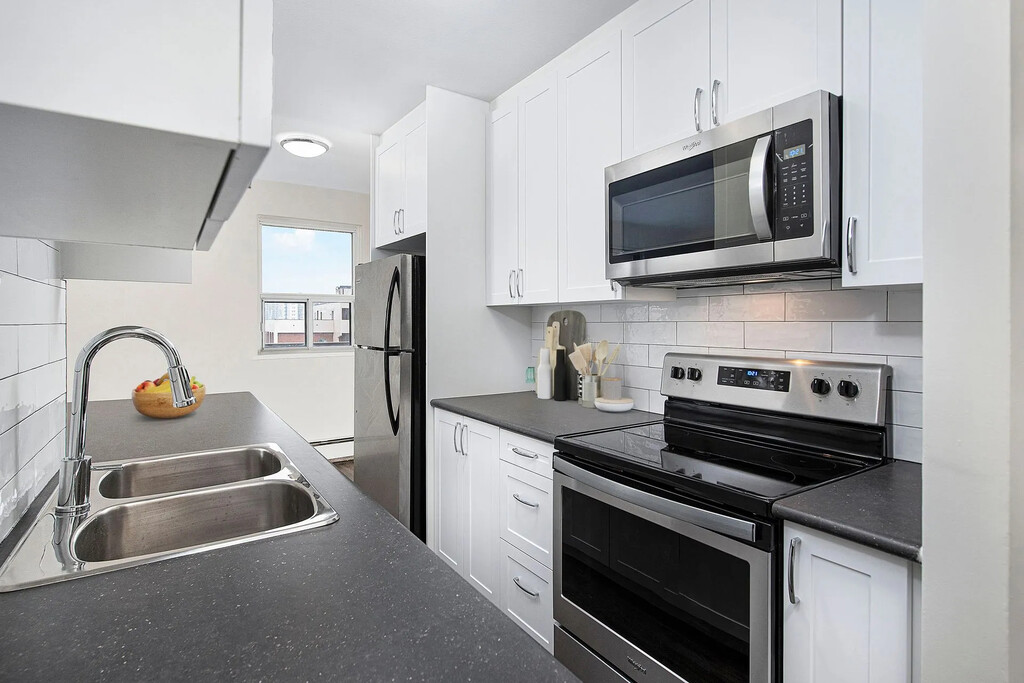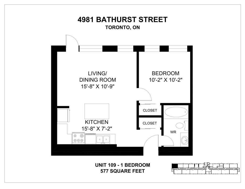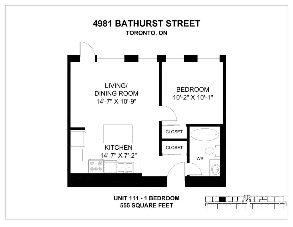 4981 Bathurst is an attractively landscaped community offering spacious and renovated 1, 2, and 3-bedroom apartments in North Toronto. Located close to the highway and area amenities, suites are beautifully renovated with dark cabinetry, stainless steel appliances, gleaming hardwood floors and chic bathrooms. Residents benefit from convenient online payments and maintenance requests, recently upgraded on-site laundry facility, community BBQ area, and professional on-site management. Community - With public transit outside your apartment, in this quiet neighbourhood you will have access to all the conveniences located on Bathurst street from drugstores to grocery and entertainment options. North York soccer fields are across the street and Northview Heights Secondary School is moments away. If you are looking for green space, Acona and Antibes Parks are close by and the walking paths of the Finch Corridor and the Dufferin Creek amenities are easily accessed Rental Process - We are open for business and have refined our online rental process. View our 360-degree virtual tours, which give a general sense of unit layouts and finishes. We also encourage you to schedule a personal showing with our leasing specialist who would be happy to safely tour you through amenities and available suites. Online Payments and Communications -Property Vista resident portal is available to ensure the ease of rental payments, maintenance requests, and communication with property management – all accessible online from your personal device. *Pricing, availability, and incentives are subject to change. Conditions apply. Suite features may vary. Images and virtual tours may not reflect actual suite finishes. E. & O.E.