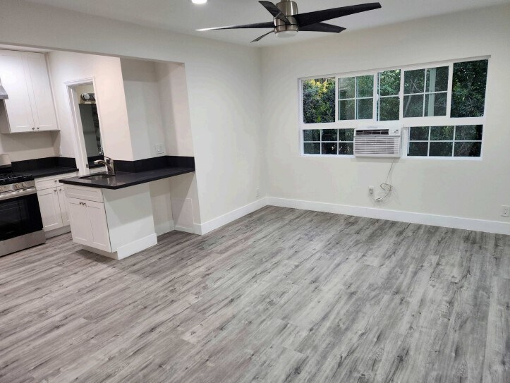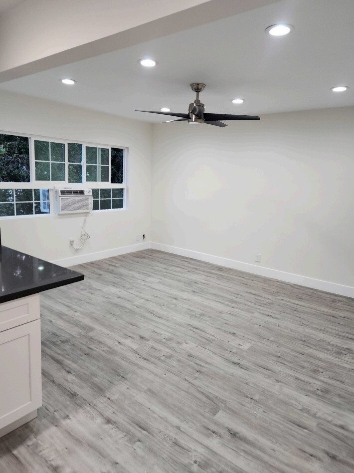 The Unit has been completely remodeled new floor new kitchen cabinets new windows new ceiling fans. new window air conditioner