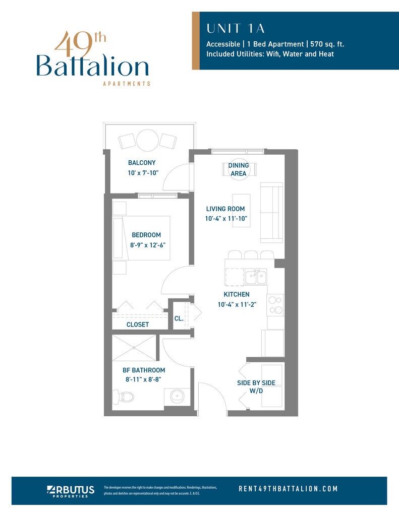 49th Battalion Apartments offers Studio to 2 Bedroom apartments starting from $1,055 and having 420–1,060 sq ft. Here is the current pricing and availability: