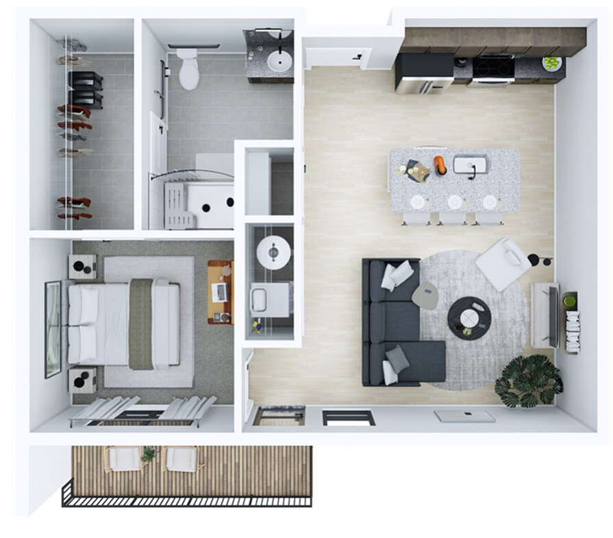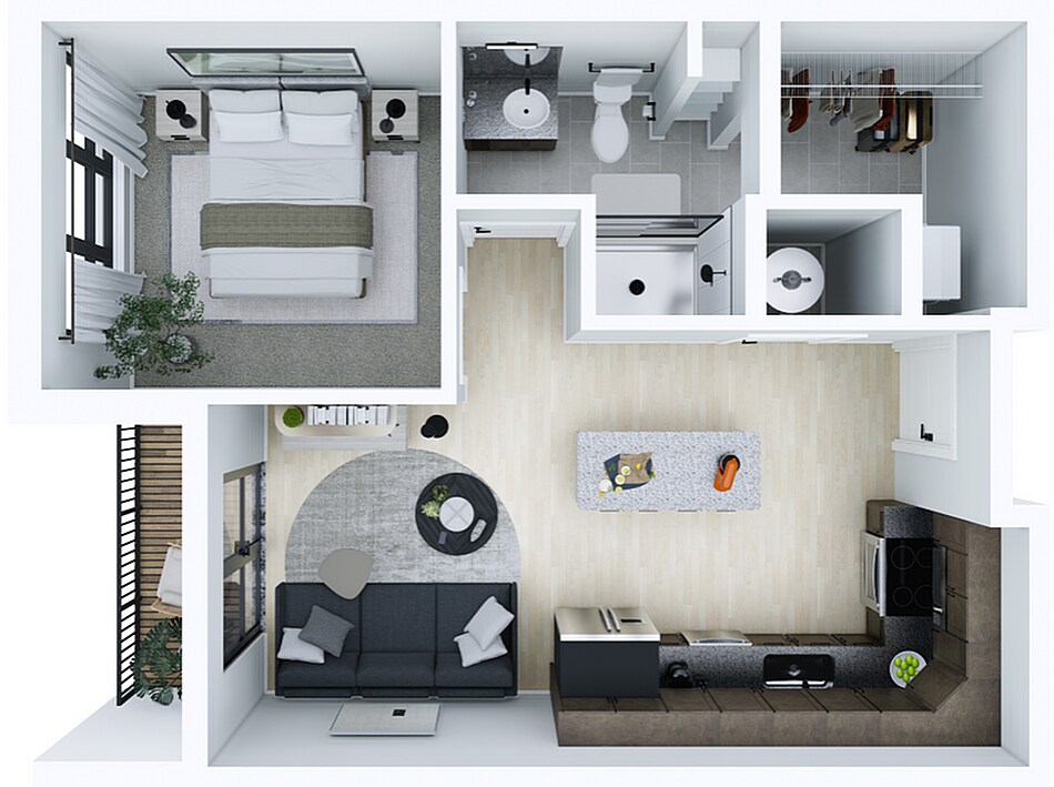 Studio, 1 Bath, 542 sq ftAvailable NowModel Gallery