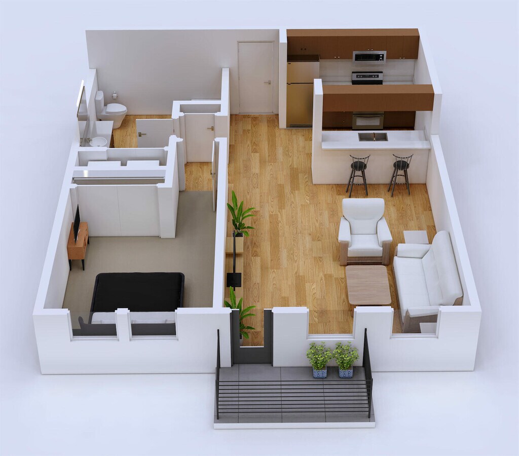 Studio, 1 Bath, 603 sq ftModel Gallery