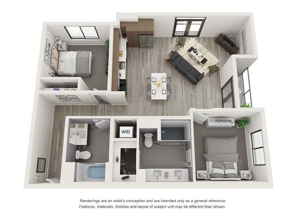 1 Bed, 1 Bath, 663-666 sq ftAvailable NowModel Gallery