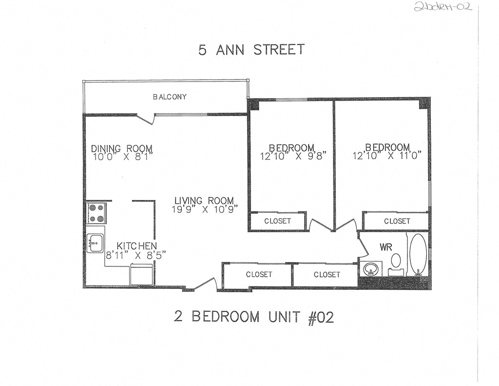 Two bedrooms unit with 1 bathroom and balcony - Floorplan 2 ![]()
