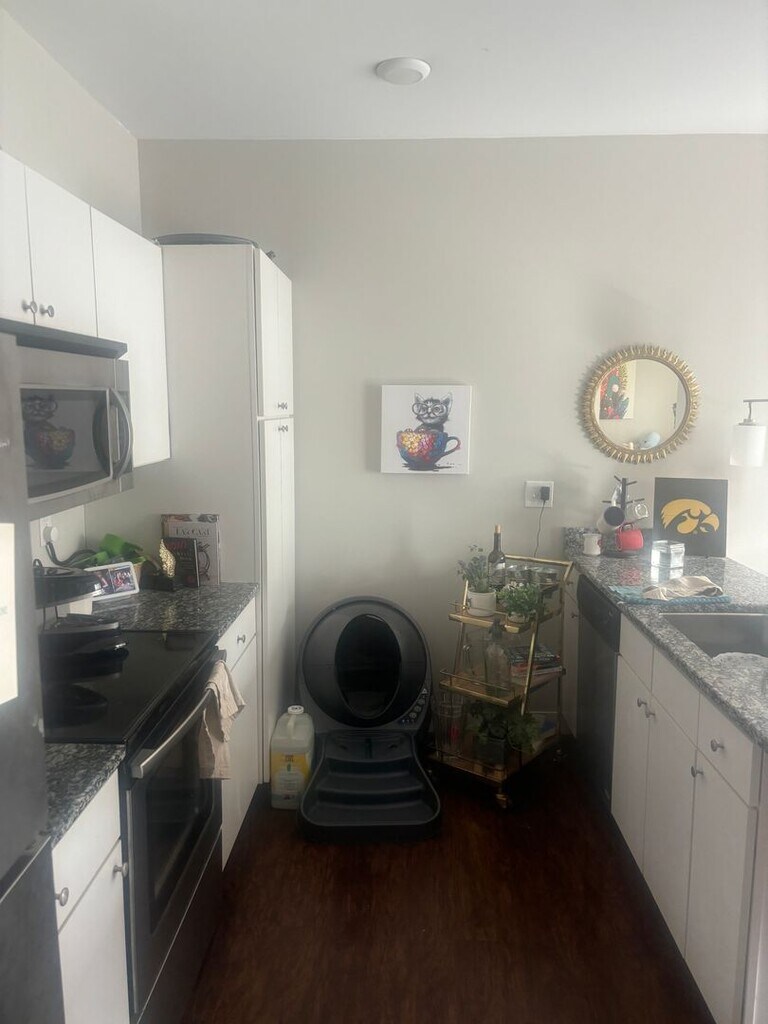 These one bedroom and studio units on the first and second level at 5 Lincoln Avenue were built brand new in 2015. These luxurious units provide a clean, upscale, healthy, and secure environment and are catered to graduate/PhD level students and/or professionals. The apartment complex is in a great location less than 1 minute from The University of Iowa Dental and Medical Schools, and the complex is an easy walk to Kinnick Stadium, Carver-Hawkeye Arena, The University of Iowa Hospital, and the University of Iowa Law School. These newer units include wood flooring in the kitchen, living room, and hallway, and there’s carpeting in the bedroom and bedroom closet. The apartment also boasts central heating and air conditioning and 9 foot ceilings. The kitchen includes granite counter tops, dishwasher, garbage disposal, electric oven, microwave, and refrigerator. The living room is spacious with plenty of room for couches, chairs, and an entertainment center. The bathroom includes vinyl flooring, sink vanity, and tub/shower combo. The apartment complex includes an on-site laundry room and lounge. There is a community 2,200 sq. ft. rooftop patio/deck with propane gas grill. There’s also optional heated underground parking available. The unit is located directly next to a bus stop and is directly across the street from the University of Iowa Dental School area. *Video and pictures of Exact unit!
