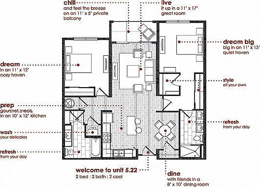 C1 - Floorplan 1 Apartment Unit: 202Apartment Model: C13 Bedroom, 2 Bath, 1551 sq ftAvailable Now