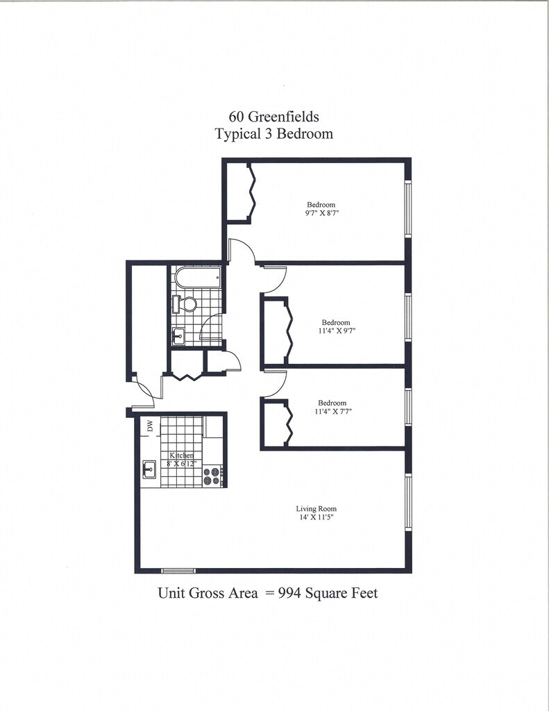 Apartment Model: Three Bedroom3 Bedroom, 1 Bath, 994 sq ftUnavailable![]()