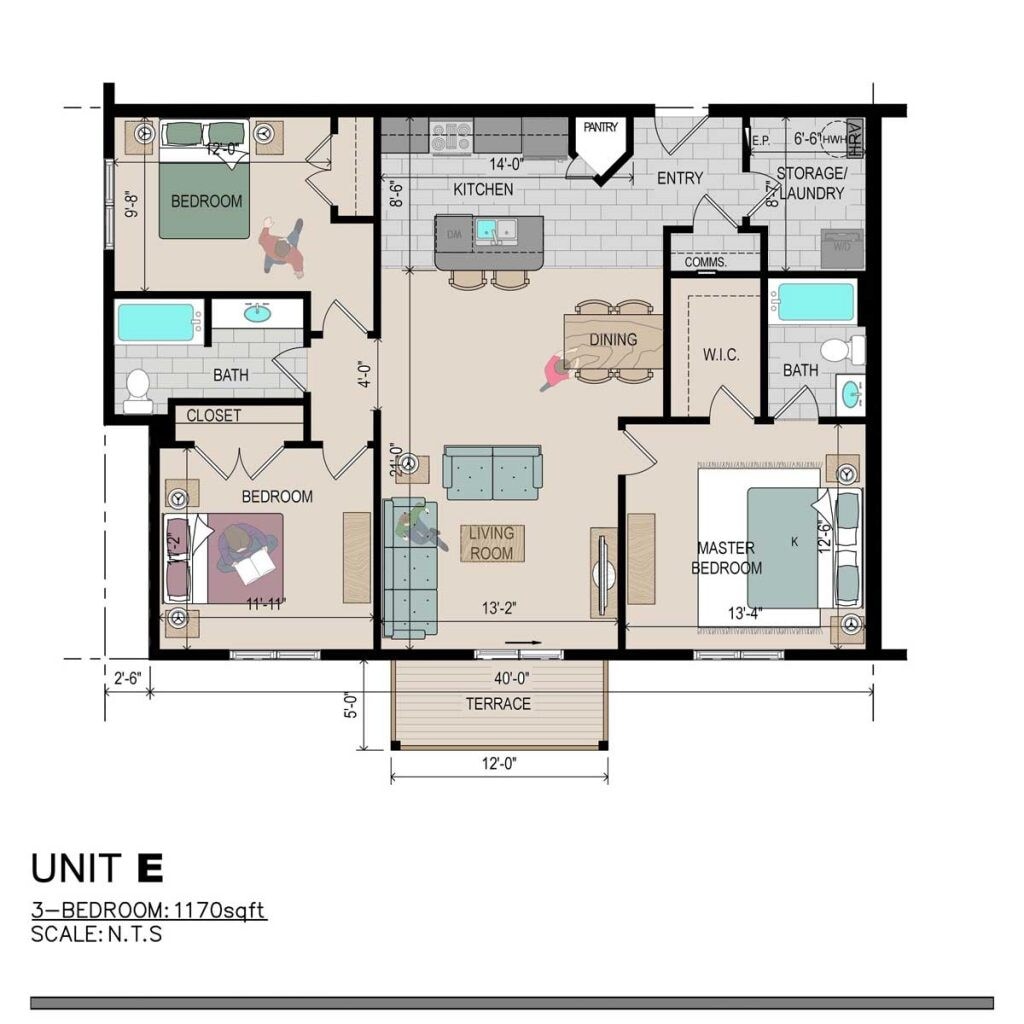 Apartment Model: Layout E3 Bedroom, 2 Bath, 1170 sq ftAvailable December 31, 2025Layout E - Floorplan 1 Apartment Unit: 301Apartment Model: Layout E3 Bedroom, 2 Bath, 1170 sq ftAvailable December 31, 2025