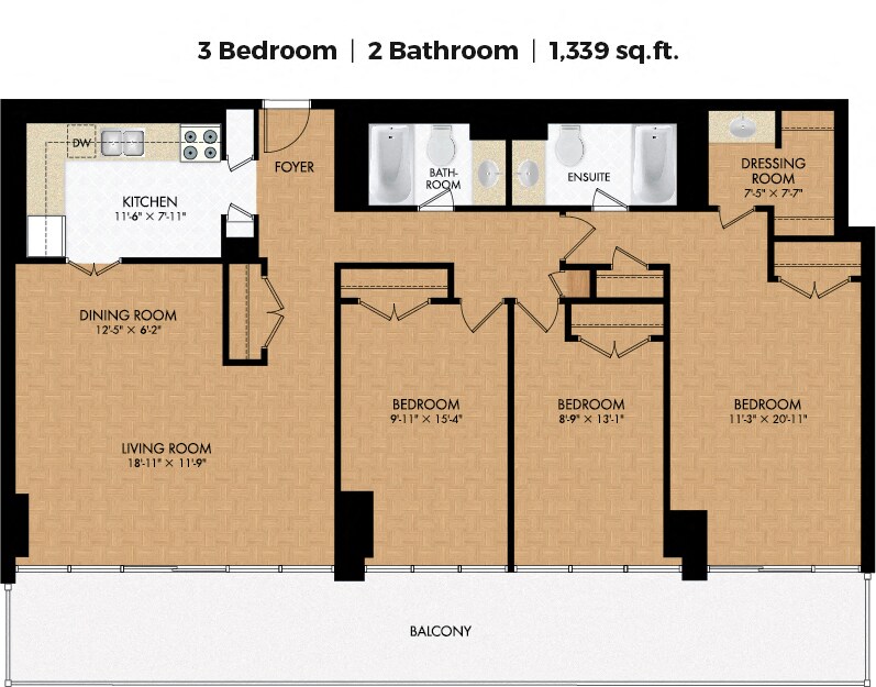 Apartment Model: 3 Bedroom 2 Bath3 Bedroom, 2 Bath, 1339-1418 sq ftAvailable April 7, 2026FloorplansPhotos![]()