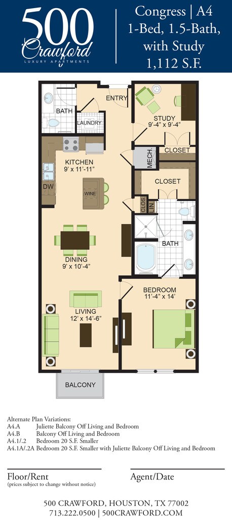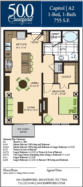 500 Crawford Apartments offers 1 to 2 Bedroom apartments starting from $1,450 and having 710–1,312 sq ft. Here is the current pricing and availability: