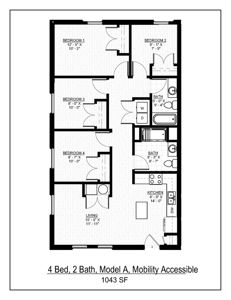 4 Beds, 2 Baths, 1076 sq ftModel Gallery