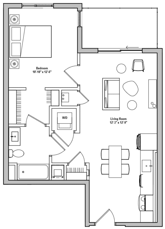 Apartment Model: S1From $2,575Studio, 1 Bath, 545 sq ftAvailable NowFloor plans are artist's rendering. All dimensions are approximate. Actual product and specifications may vary in dimension or detail. Not all features are available in every rental home. Prices and availability are subject to change. Base rent is based on monthly frequency. Additional fees may apply, such as but not limited to package delivery, trash, water, amenities, etc. Deposits vary. Please see a representative for details.