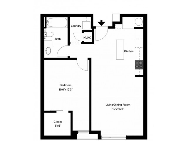 Studio, 1 Bath, 511 sq ftAvailable NowModel Gallery