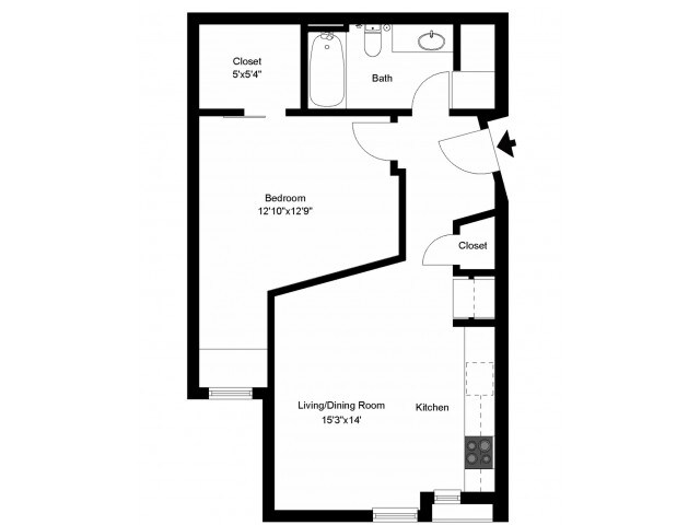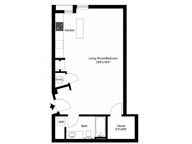 Studio, 1 Bath, 538 sq ftLargest StudioThis is the largest Studio at this PropertyModel Gallery