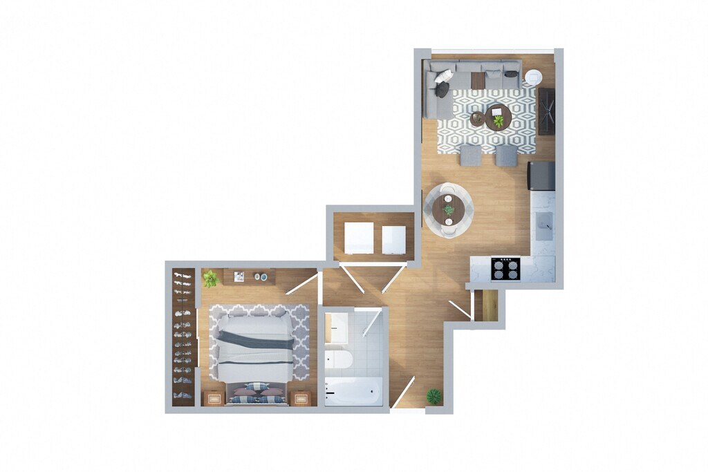 1 Bed, 1 Bath, 518 sq ftModel Gallery