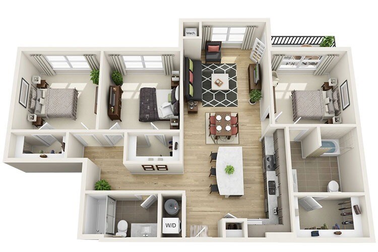 3 Beds, 2 Baths, 1239 sq ftAvailable NowCheapest 3 BedroomThis is the cheapest 3 Bedroom at this PropertyModel Gallery