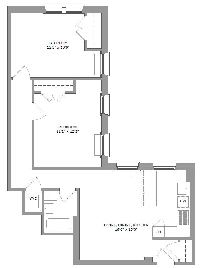 2 Bedroom 1 Bathroom - Floorplan 2 Apartment Unit: 33Apartment Model: 2 Bedroom 1 Bathroom$2,5002 Bedroom, 1 Bath, 790 sq ftAvailable January 9, 2026![]()