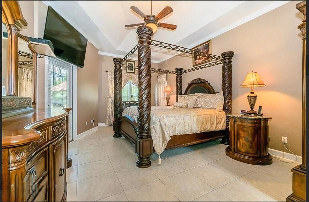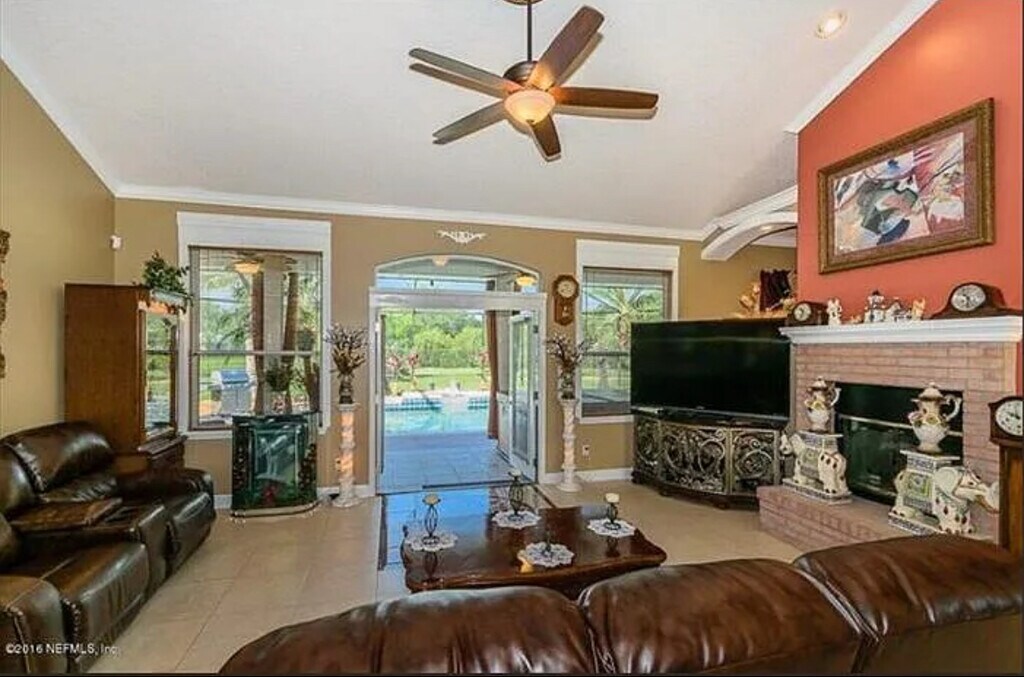 This tropical paradise offers luxury, charm, and resort-style living in the heart of St. Johns County. Sitting on one of the largest lots in the subdivision, this 4-bedroom, 3-bathroom home provides unmatched privacy, stunning architectural details, and seamless indoor-outdoor living. Located within close proximity to grocery stores, shopping centers, and top-rated schools, this home offers the perfect blend of luxury and convenience. Key Features: Private Screened Pool Expansive Lanai & Pool Deck: Perfect for entertaining or relaxing with breathtaking lake views. Coquina Exterior & Architectural Shingles: The unique coquina exterior pairs with stylish and durable architectural shingles, enhancing the home's curb appeal and longevity. Elegant Interiors: Gourmet Kitchen: This refined space exudes sophistication with its tray ceiling, elegant chandelier, and classic striped wallpaper. Rich cabinetry complements the design, making the kitchen both functional and stylish. Grand Entrance: A stunning double-door entrance, decorated with a medallion and a grand chandelier set within a tray ceiling, creates an impressive and welcoming first impression. Dining Area: Featuring a beautiful crystal chandelier suspended from a tray ceiling, hardwood floors, and a large arched window that floods the space with natural light and offers scenic views of the landscaped front yard. The perfect space for dining and entertaining. Living Area: Grand windows and double doors lead to the outdoors, while 15-foot vaulted ceilings amplify the spaciousness. An intricately designed floor medallion serves as a luxurious focal point, enhancing the space's refined charm. Family Room: Featuring high vaulted ceilings with elegant arched niches and large windows offering beautiful views of the pool and backyard, this room is perfect for relaxation and entertaining. Master Suite Retreat: A tray ceiling with recessed lighting and a ceiling fan adds elegance, while the room's large window fills the space with natural light. The master bedroom also offers direct access to the pool, blending indoor comfort with outdoor luxury. Luxurious Master Bathroom Retreat: This spa-like master bathroom boasts a large soaking tub set beneath a arched window, offering natural light. The sleek glass-enclosed shower, dual vanities with rich wood cabinetry, and a mosaic tile design at the entrance enhance the elegance of the space. Outdoor Living: Multiple Pool Access Points: Enjoy seamless indoor-outdoor living with convenient pool access from the guest bedroom, guest bathroom, living area, and master bedroom. Additional Features: Water Softener. Beautiful Driveway Irrigation Well This home, with its tropical setting, luxurious finishes, and exquisite details like the grand entrance, coquina exterior, architectural shingles, and multiple chandeliers, provides an elegant oasis for relaxation and stylish living. Schedule a showing today to experience this tropical oasis firsthand this rare rental opportunity won't last long!