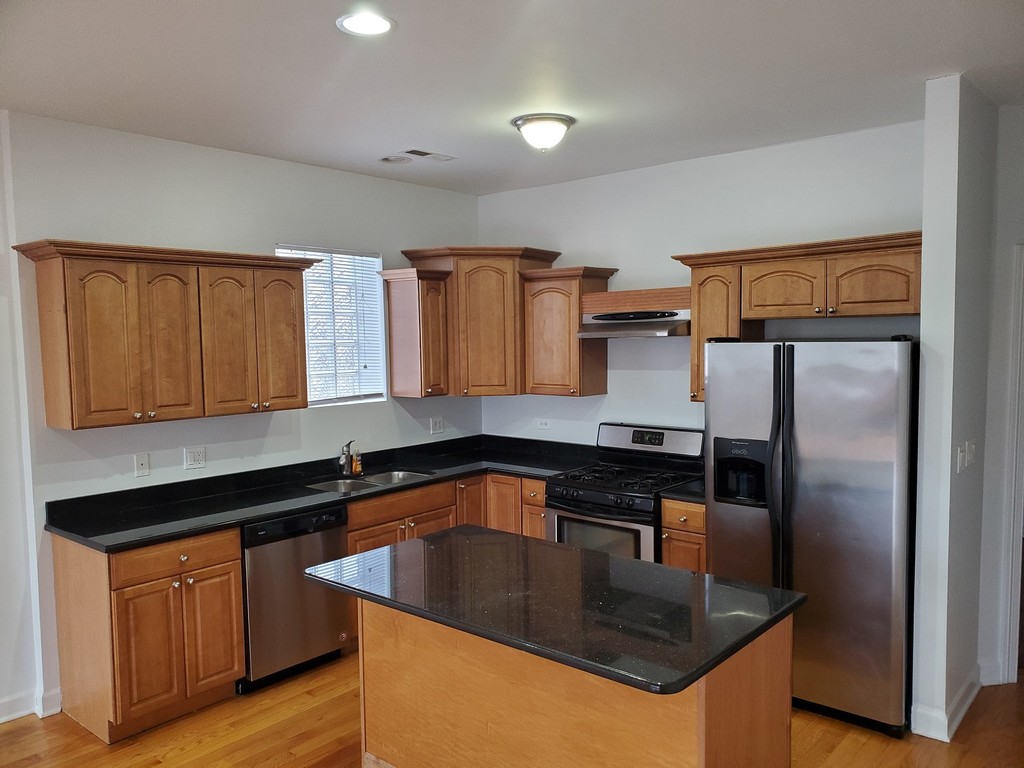 Available now!! Completely vacant and ready for immediate occupancy! 1 assigned parking outdoor spot available! Top floor, newer Construction Unit with modern open floor plan. Large Kitchen has Island, Granite Counter tops, Maple Cabinetry, SS Appliances(Including Dishwasher and gas oven/stove), real oak Hdwd Floors penthouse unit in Elevator Building right off I-90 Kennedy Expressway near O'hare Airport. Full Master Suite including large Jacuzzi tub and walk-in slate tile shower, Toto Toilet, Vessel Sink, Porcelain Tile Floors, and your own balcony! Central Forced Air Heat and AC. In-unit Large-Load Washer/Dryer Combo. Bright recessed Lighting thru-out, 3 nice-sized bedrooms. Addt'l 2nd Full Bath with soaking tub. Unit is delivered completely unfurnished, freshly painted, clean and move-in ready. EZ application process includes mandatory Credit and Background check, and employment verification. **Realtors welcome!