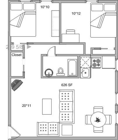 - 2 Bedrooms- 2 Bedroom - Small2 Beds, 1 Bath, 630 sq ft- Model Gallery- Floorplans- Availability Details- Availability Date - Unit - Sq Ft - Unavailable - 2 Bedroom - Small - 630 sq ft Apartment Model: 2 Bedroom - Small2 Bedroom, 1 Bath, 630 sq ftUnavailable![]() - 2 Bedroom - Small - Floorplan 1 - 2 Bedroom - Large2 Beds, 1 Bath, 750 sq ft- Model Gallery- Floorplans- Availability Details- Availability Date - Unit - Sq Ft - Unavailable - 2 Bedroom - Large - 750 sq ft Apartment Model: 2 Bedroom - Large2 Bedroom, 1 Bath, 750 sq ftUnavailable![]() - 2 Bedroom - Large - Floorplan 1