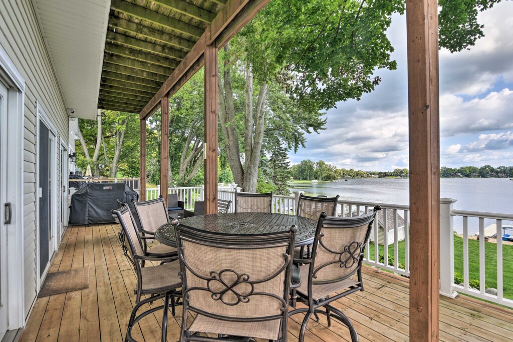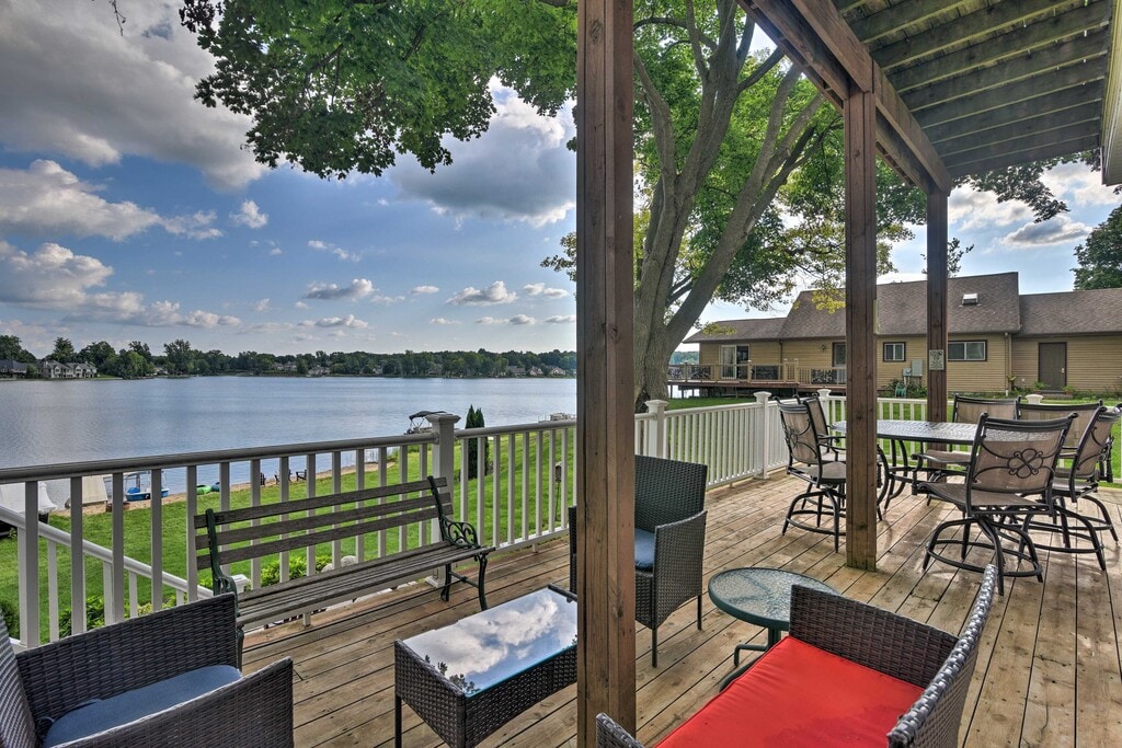 Perfect for Extended Stays / Insurance Relocation / Travel Nurse | Private Sandy Beach | 2 King Beds | Remote-Work & Family Friendly Sleeps up to 8 Bedroom 1: King Bed | Bedroom 2: King Bed, Full Bed | Bedroom 3: Queen Bed with walkout private entrance | Additional Sleeping: Pack 'n Play OUTDOOR LIVING: Upper & lower decks, open yard, lake access, gas grill, beach chairs, private dock, 4 kayaks, peddle boat, paddleboard, life vests, hiking trail access, private sandy beach, QUIET and peaceful no-wake lake safe for families INDOOR LIVING: Family Room TV, gas fireplace, ceiling fans, board games, puzzles, dining table, desk workspace KITCHEN: Fully equipped w/ stainless steel appliances, granite countertops, bar seating, Keurig & drip coffee makers, microwave, blender, Crockpot, spices, toaster, cooking basics, crockpot, electric tea kettle, and additional garage fridge/freezer GENERAL: Free WiFi, washer & dryer, central heating & air conditioning, linens & towels, beach towels, complimentary starter set of each (shampoo conditioner and soap, laundry and dishwasher pods, toilet paper in each bathroom, paper towels), hair dryer, keyless entry, high chair, whole home generator ACCESSIBILITY: 4 steps to enter, multi-level property, no bedrooms on main floor FAQ: 3 exterior security cameras (facing out) PARKING: Parking pad (1 vehicle), driveway (1 vehicle), Garage 2 small or 1 SUV Damage Protection For your peace of mind (and ours), we require all guests to purchase a $35 Risk Damage Protection Plan through Truvi for the length of your stay. This covers accidental damage or loss, so you're protected and we're protected too. It's a simple way to avoid surprise costs if something unexpected happens. Owner pays for water, garbage service, landscaping, snow removal, lawncare. Tenant pays 250.00 for gas and electric. No Pets allowed. No smoking (fines will be enforced). *** Rent is $6,000/ month for months June, July and August due to high demand on a quiet private lake.