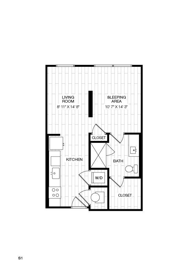 Apartment Model: S1From $1,585Studio, 1 Bath, 605 sq ftAvailable NowFloor plans are artist's rendering. All dimensions are approximate. Actual product and specifications may vary in dimension or detail. Not all features are available in every rental home. Prices and availability are subject to change. Base rent is based on monthly frequency. Additional fees may apply, such as but not limited to package delivery, trash, water, amenities, etc. Deposits vary. Please see a representative for details.