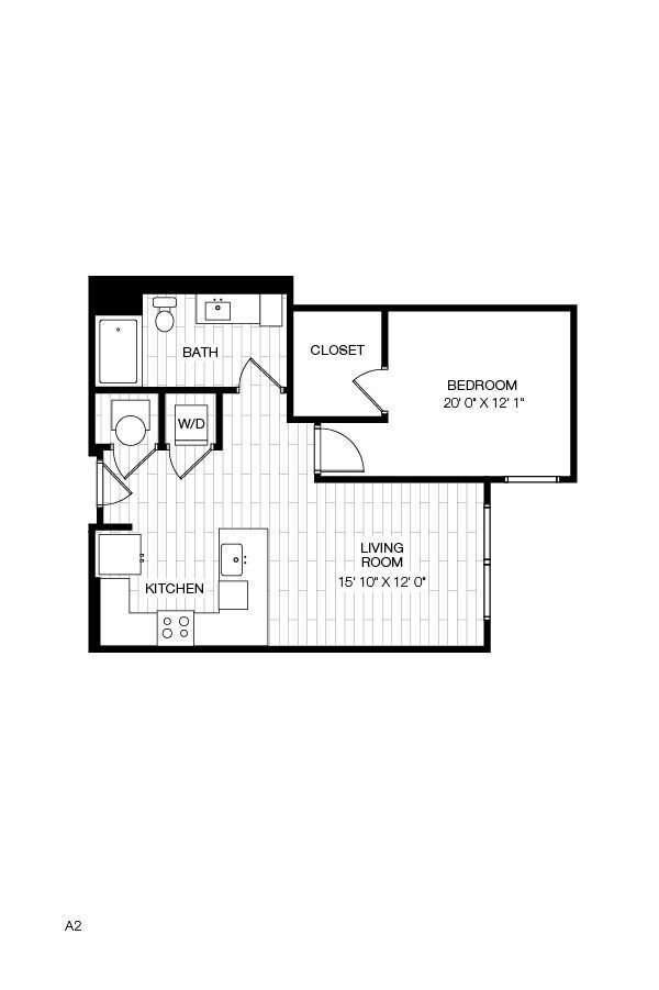 Apartment Model: A2From $1,6801 Bedroom, 1 Bath, 777 sq ftAvailable NowFloor plans are artist's rendering. All dimensions are approximate. Actual product and specifications may vary in dimension or detail. Not all features are available in every rental home. Prices and availability are subject to change. Base rent is based on monthly frequency. Additional fees may apply, such as but not limited to package delivery, trash, water, amenities, etc. Deposits vary. Please see a representative for details.