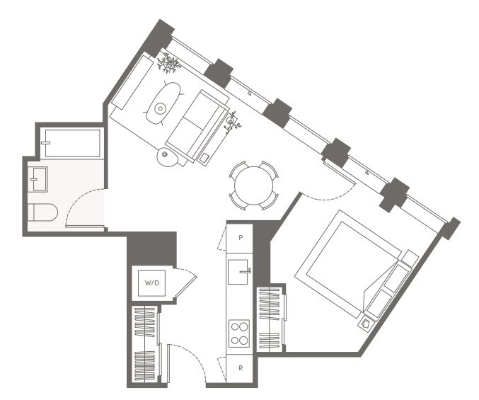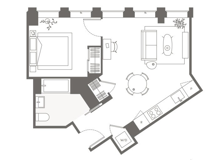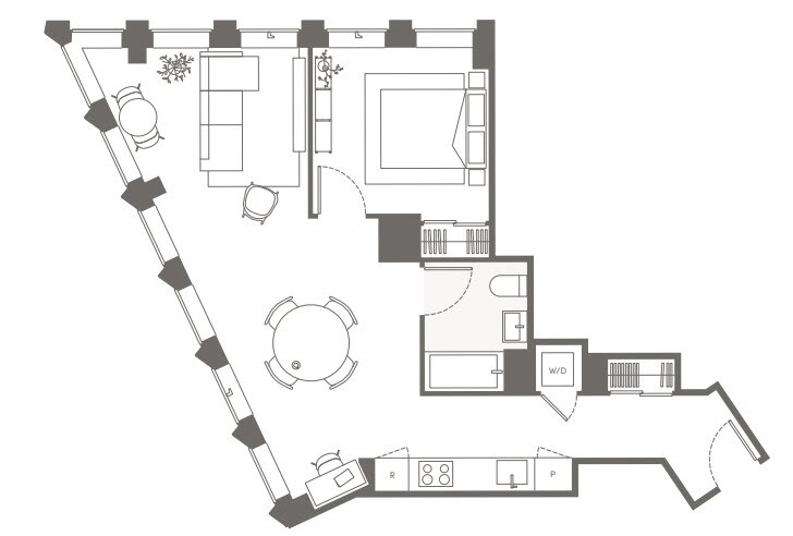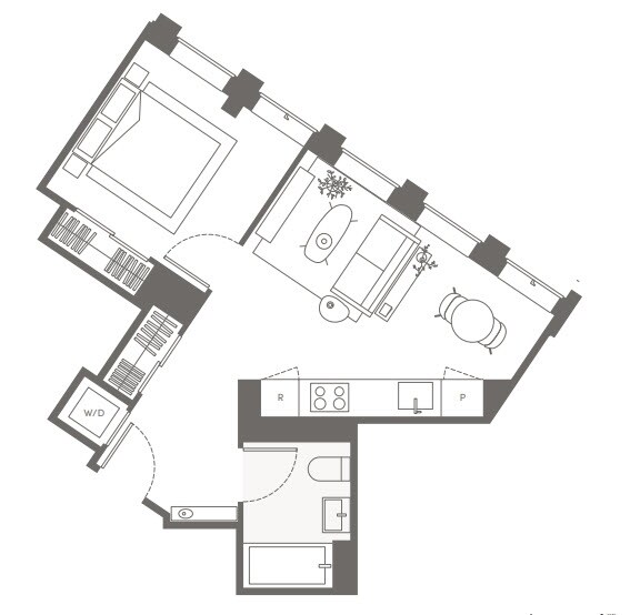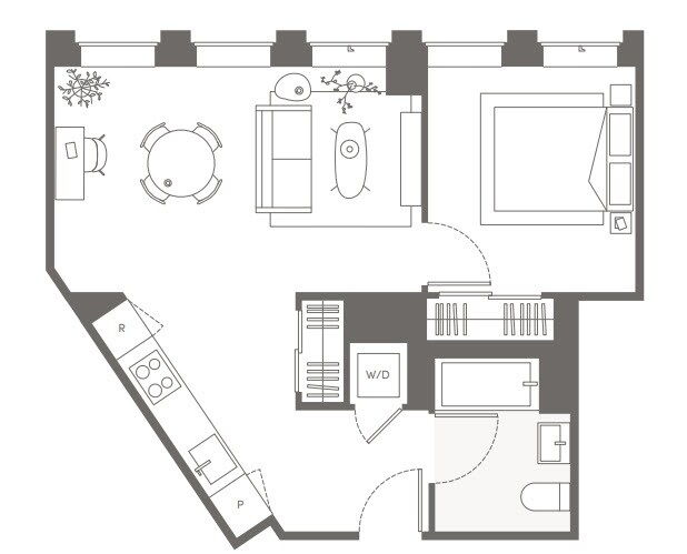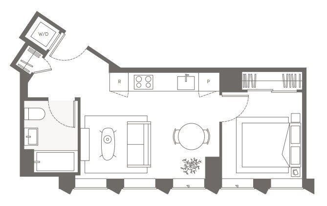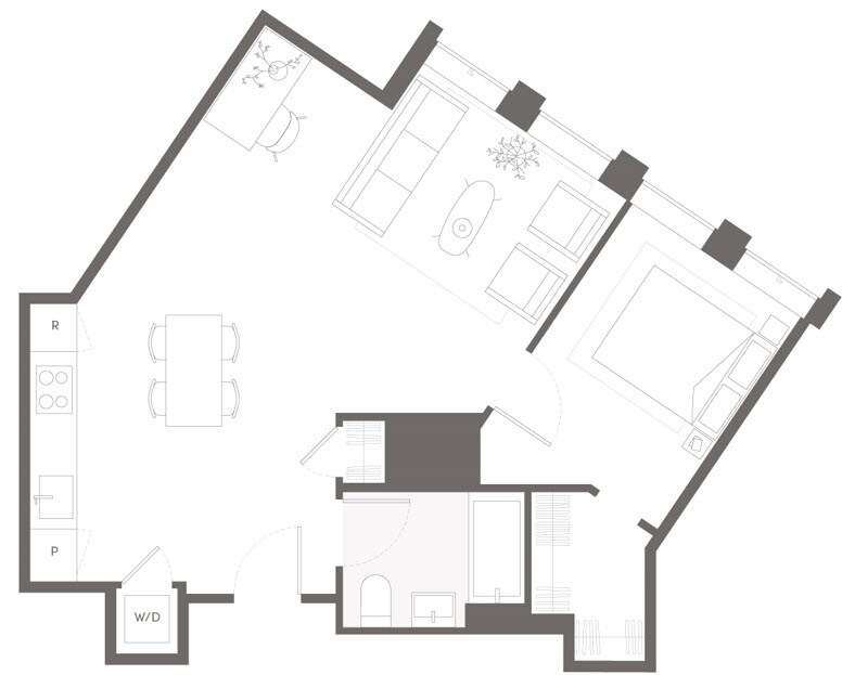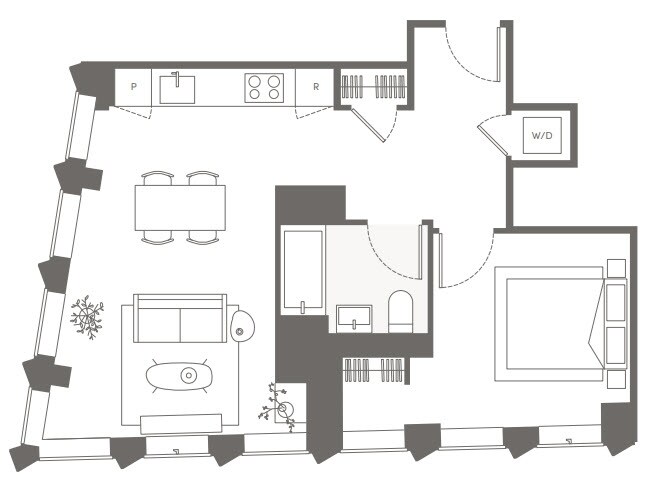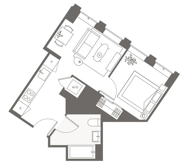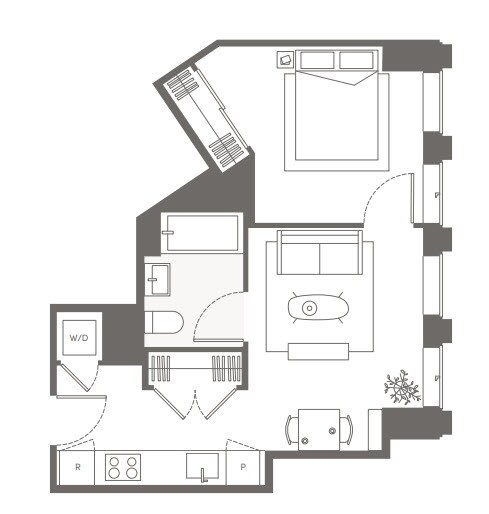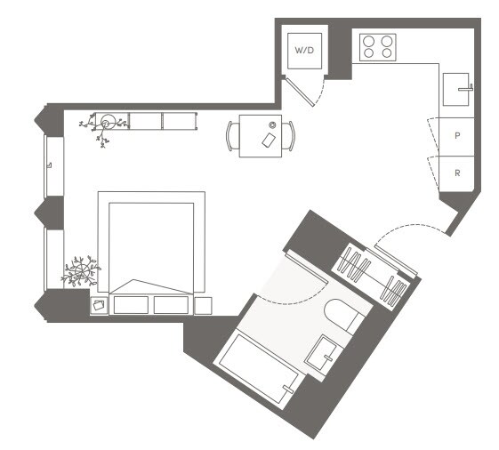 S05 - Floorplan 11 Apartment Unit: 22HApartment Model: S05Studio, 1 Bath, sq ftAvailable NowFloorplan S02