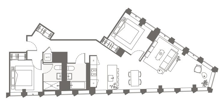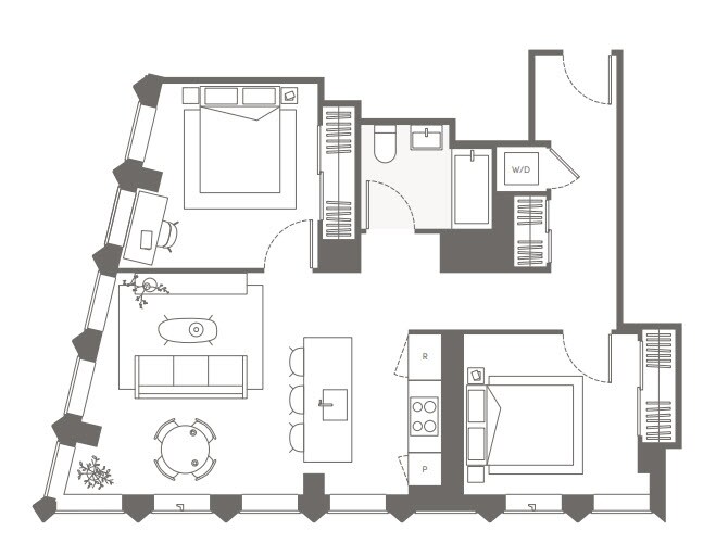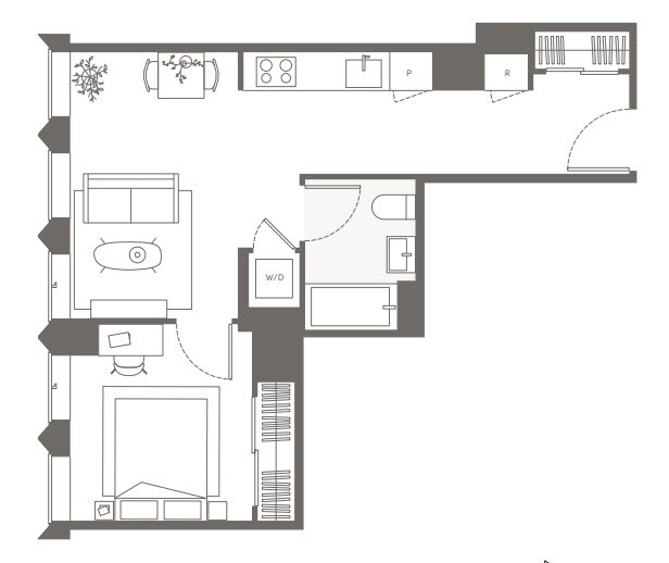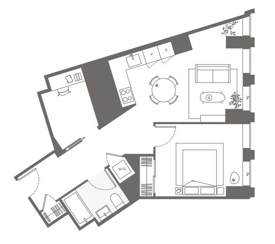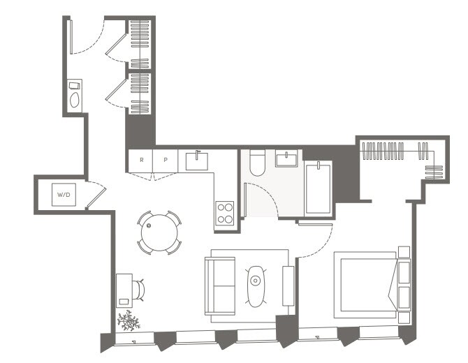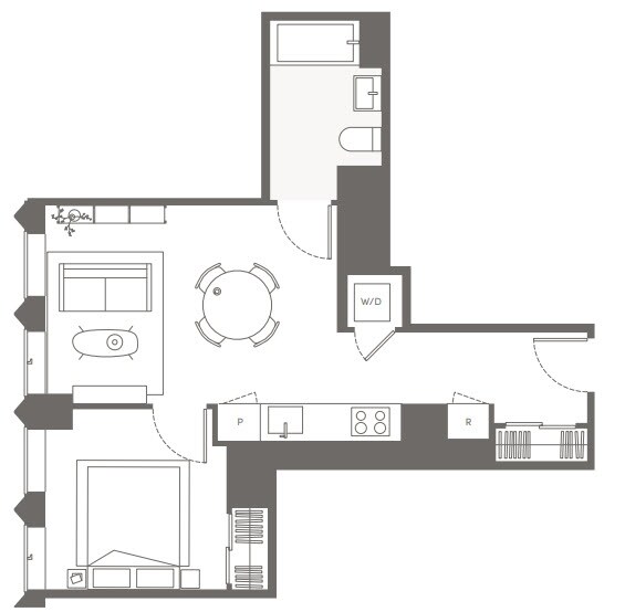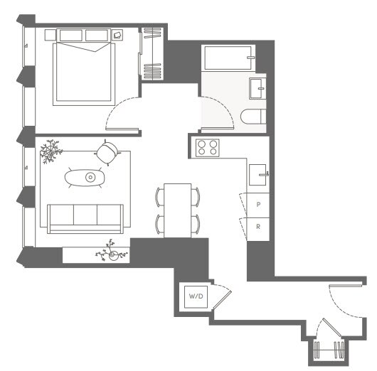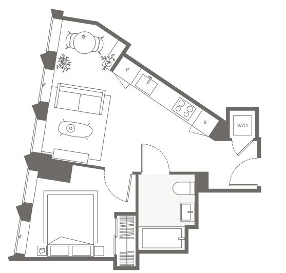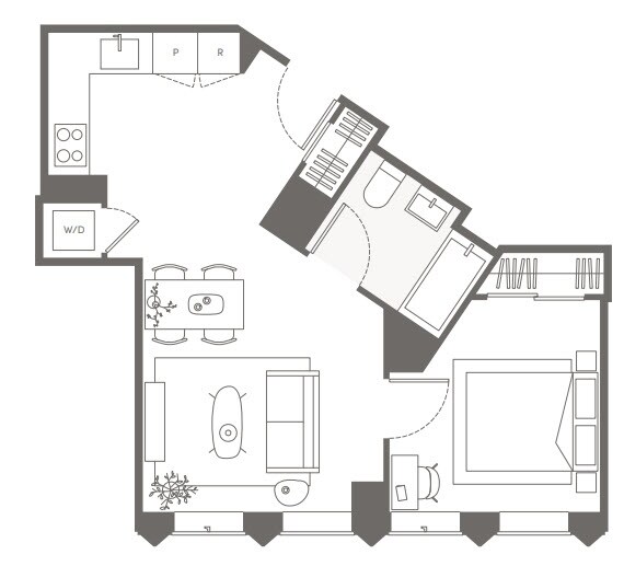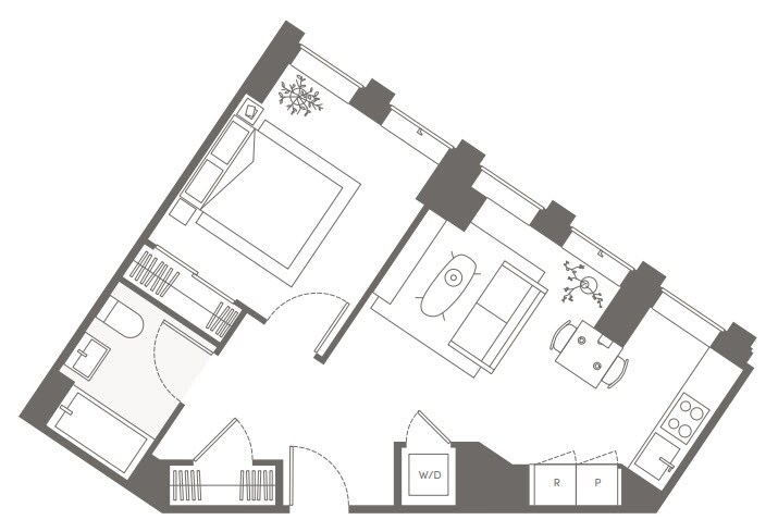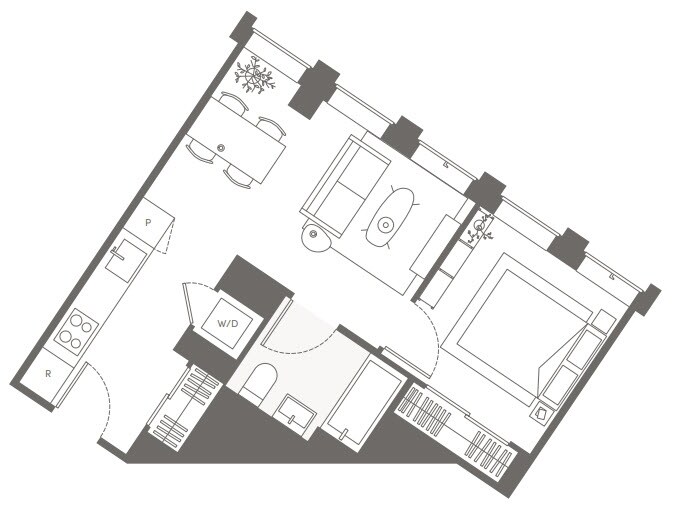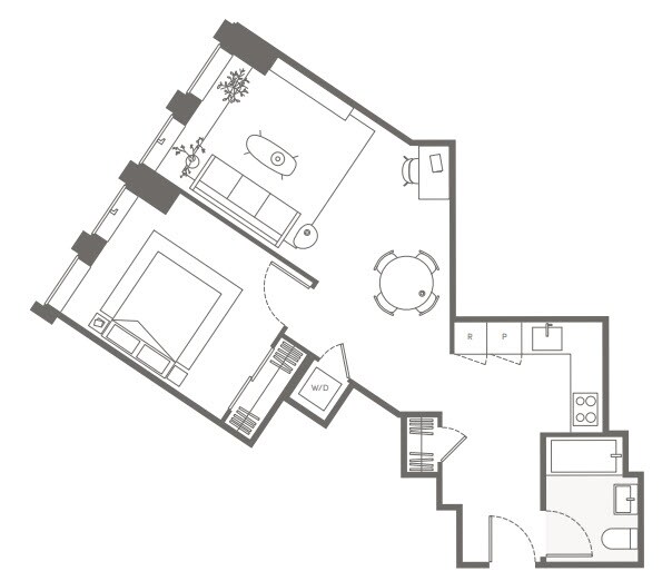 S05 - Floorplan 11 Apartment Unit: 22HApartment Model: S05Studio, 1 Bath, sq ftAvailable NowFloorplan S02