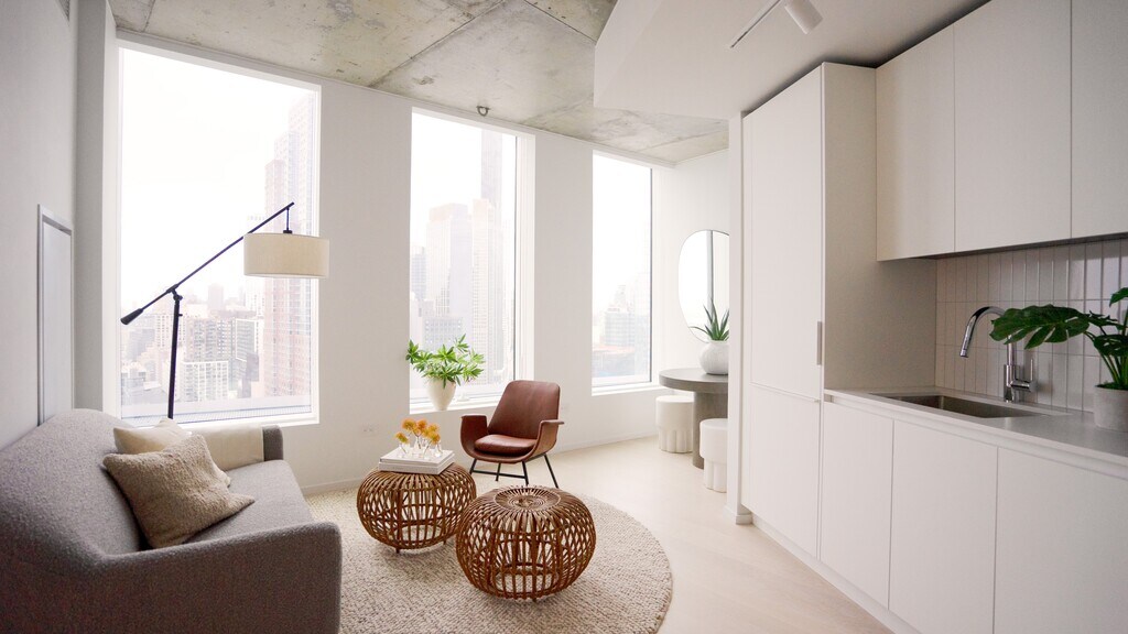 Spaces to get more done or to turn off completely. A pop up when you want to be out. A view when you want to stay in. Considered details to make every moment better. Designed to bring out the best in us. Exposed concrete ceilings and columns with 7.5 foot tall window openings that highlight the extraordinary views of Downtown Brooklyn, brownstone Brooklyn and beyond. Integrated panelized appliances and frameless doors are a few of the subtle details that make for a cleaner, more streamlined home. Smart thermostats and induction cooktops remind us, we're making a difference towards a more efficient and healthy home. Upfront fees not included in the monthly rent include: Application Fee: $20 per person/application Security Deposit: Equal to 1 Month's Rent Amenity Fee: $110 per month/1st Resident/ $55 per month/additional Residents Electric: Sub-metered based on usage Bike Storage: $10 per month Rose Associates is the exclusive broker/agent for the landlord (Landlord's Agent) for this property and this advertisement is not intended to create any other agency relationships between a real estate licensee and the landlord. Prospective renters, their brokers and/or agents understand that neither the landlord nor Landlord's Agent will charge or collect fees to a prospective renter in connection with this property except for fees as permitted by law. Nor will landlord or Landlord's Agent assume responsibility for any brokerage fees incurred by a prospective renter in connection with this property. This listing is being advertised to prospective renters and should not be re-published.