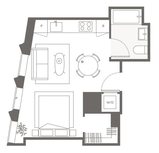 S02 - Floorplan 1 Apartment Unit: 30HApartment Model: S02Studio, 1 Bath, sq ftAvailable NowFloorplan S07