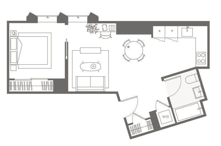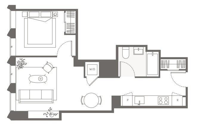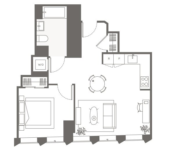 S01 - Floorplan 1 Apartment Unit: 09CApartment Model: S01Studio, 1 Bath, sq ftAvailable NowFloorplan S05