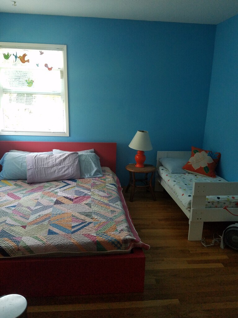 We are looking for caring and wonderful people to rent our home. It is a cute place with an open, sunny, breezy layout, 2 good-sized bedrooms and an amazing backyard with a covered deck & fire pit. The house has a working fireplace, an attached one-car garage, parking in the driveway for 2 cars, washer & dryer provided. There is one full bathroom, a linen closet, a coat closet, and extra storage in the attic. Neighbors are nice & easygoing. We have loved living here for the last 8 years. Gardeners preferred! We will pay for basic yard maintenance- lawn mowing and annual rose, tree & shrub pruning. It would be so lovely to find a renter who would enjoy caring for the flowers, vegetables & fruit. There are raspberries, strawberries, blueberries & grapes, and a small vegetable patch currently planted with herbs, cherry tomatoes, potatoes & chard. You don't HAVE to be a gardener or an experienced gardener to live here. If the flowers, fruits & veggies die, but you pay your rent on time & are happy in our home, we'll be happy too . But if you DO love to garden, we would extra to love to hear from you. There is also a community garden with open plots just 1 block away. There is currently a slide attached to the deck and a "treehouse" ~3 ft off the ground. We can take down the slide if you don't want it, but the tree-house stays. The treehouse was built in 2020 and is solid & in great condition. The house has been seismically upgraded, has a new roof & all new plumbing. Pets are welcome so long as they are mellow. No puppies, please. Smoking inside is prohibited, but outside is ok.
