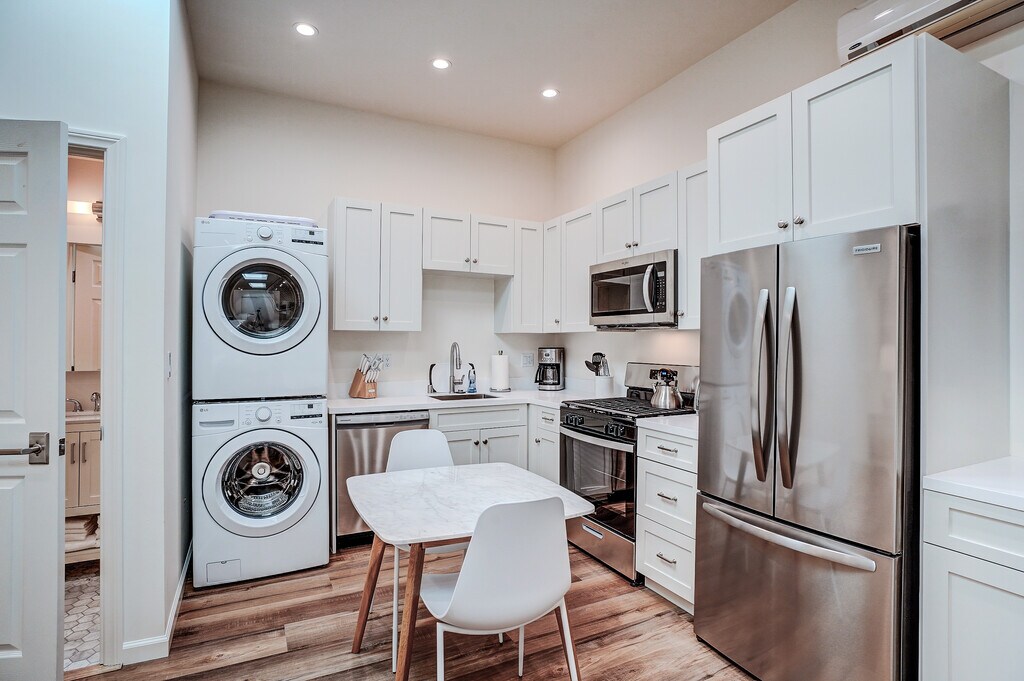 Fully Furnished Studio in "The Flats" of Beverly Hills, Complete fully stocked Kitchen, W/D in unit, Parking (1), Stainless Steel Appliances, Utilities all included, Central A/C, Laminate Floor, Marble/Tile Bathroom, Cal-King Bed, Wi-fi, Smart TV, All-in-one Printer, High ceiling, Very private. This is a top-tier beautifully designed studio, everything is fresh and brand new.