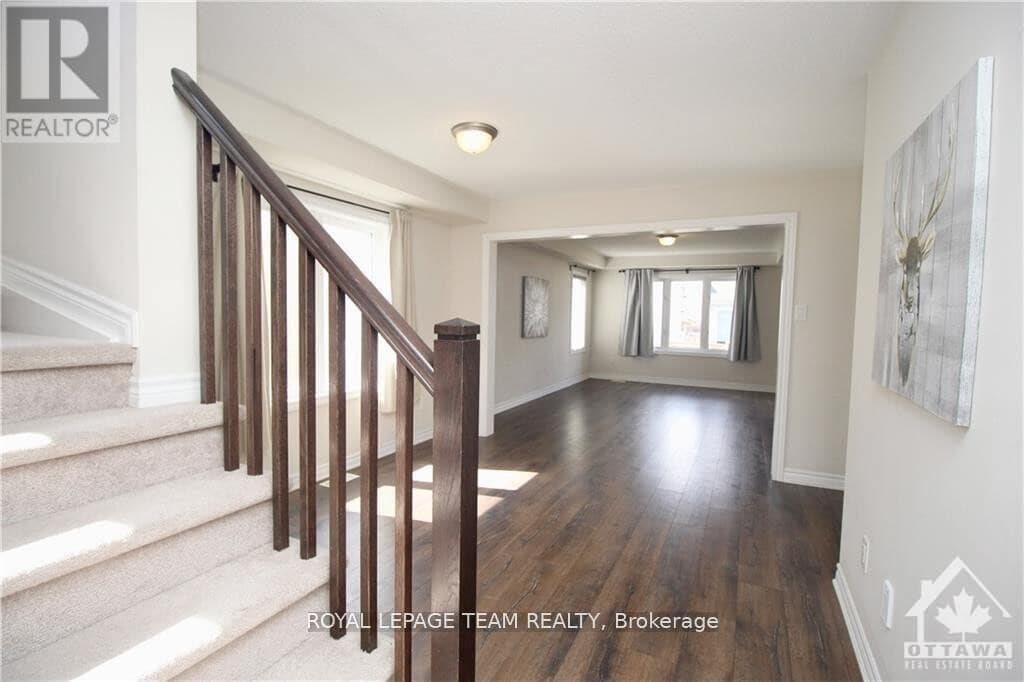 Welcome to this bright and spacious 3-bedroom,2.5-bath end-unit townhome,offering over 1,800 sq. ft. of living space above grade. Situated in sought-after Monahan Landing,this home is flooded with natural light and perfectly located near schools,parks,shopping,recreation,trails,and OC Transpo. Step into a luxury kitchen featuring quartz countertops,tile backsplash,ceramic flooring,solid wood cabinetry,and stainless steel appliances including a fridge with ice and water,stove,dishwasher,and overhead microwave/hood fan. An inviting eat-in area with ceramic floors and direct access to the fully fenced backyard makes this kitchen as functional as it is stylish. The open-concept main floor offers excellent flow for everyday living and entertaining,with a bright living room featuring a coffered ceiling,a separate dining area,and a convenient powder room. Upstairs you'll find two generously sized secondary bedrooms,a full 4-piece main bathroom,and a spacious primary suite complete with a 3-piece ensuite with walk-in shower,plus both a walk-in closet and an additional standard closet. The unfinished basement provides endless possibilities with an open layout and a rough-in for a future bathroom. This end-unit offers privacy and additional side windows for extra natural light This home delivers comfort,style,and exceptional convenience in one of Kanata's most family-friendly communities. (id:52069) ID#: 1403572