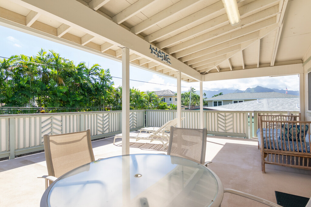 Just steps from one of the most beautiful beaches on the island of Oahu, this Hawaiian style home is a perfect, peaceful getaway for your extended family. The house provides what you and your family need to relax, play, cook, and retreat. Open and airy, the Apartment provides large social spaces for your group to comfortably share their vacation together. Newly renovated 1000 square feet of living space, large sundeck with small ocean view and beautiful views of the Koolau mountain range. BBQ for your family, read a book in the comfortable lounge chairs or just enjoy the sunrise or sunset with friends and family. Bright and airy central air-conditioned dining & living room with full kitchen. 2 bedroom come with a queen size bed and the third bedroom offers two twin beds. Both bathrooms come with a tub/ shower combination sink and toilet. Shared washer/ dryer and outdoor shower on bottom floor of the building. A very short 2 minute stroll on a private lane takes you to the world-renowned five-mile stretch of Kailua's white sand beach. Voted by Conde Nast publications as one of the most beautiful beaches in America. Kailua beach offers soft sand and crystal clear waters, making it a perfect spot for sunbathing, swimming, and an array of adventures like kayaking, boogie boarding, wing boarding or kite-surfing. Walk to the beach, go for a morning stroll and watch the sunrise or an evening walk and see the glowing clouds. Only five car minutes away is downtown Kailua. Be inspired by the variety of selected boutiques, excellent and unique fine restaurants and bars, local grocery stores, Wholefoods, Yoga studio and much more. Other things to note The house is on a private beach lane. We ask that all parties end at 9 pm in respect to our neighbors and other guests.
