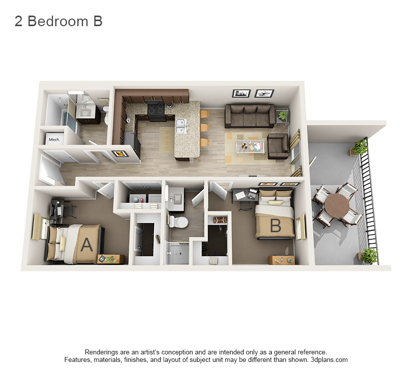 2 Beds, 2 Baths, 788 sq ftModel Gallery