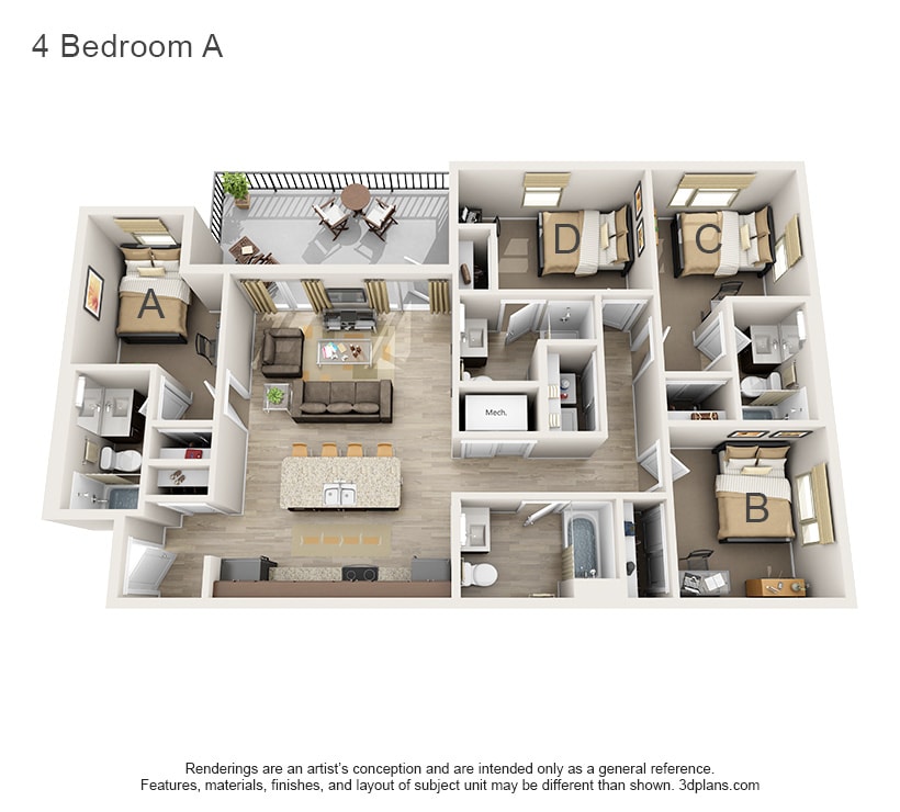 Availability Date Unit Sq Ft Unavailable 4BR/4BA - A 1270 sq ft Apartment Model: 4BR/4BA - A4 Bedroom, 4 Bath, 1270 sq ftUnavailable![]()