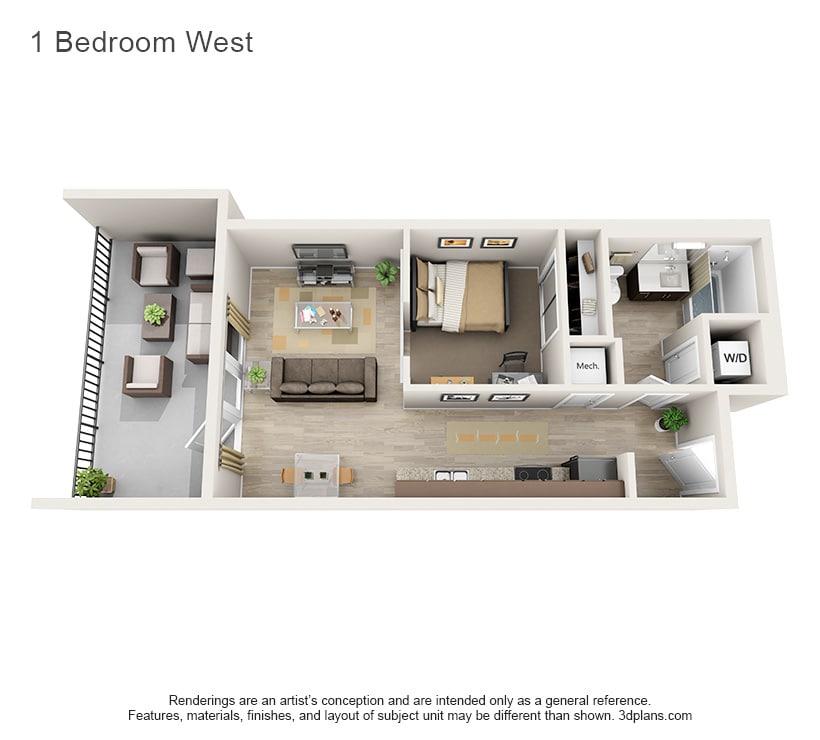 1 Bed, 1 Bath, 582 sq ftModel Gallery