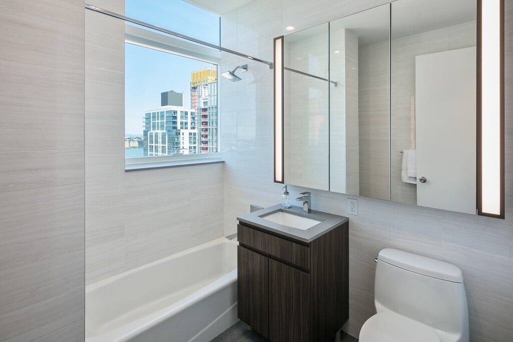 September 5, 2017Location is nice, but the fire alarms in the unit are so sensitive that they go off just from the shower steam in your bathroom. Chatting with my neighbors and the doormen, this is a pervasive problem throughout the property. I haven't been able to take a single shower without the alarm blaring for 10-15 minutes. I will edit the review if management fixes the problem somehow. Needless to say, 2 months free rent won't make up for this incredible annoyance. Another major problem with the interior ...(which was designed by a novice architect, I assume) is the kitchen cabinets are so narrow that a typical round dinner plate can't fit inside it. My dinner plates and my silverware tray both have to go on the counter or on the high up wide shelf to fit - total nonsense. I have never seen anything like that in my life. They should have made fewer cabinets if it meant basic kitchen goods could actually fit in them. The closets in the bedroom also only come with one bar across rather than the double top/bottom bar (which gives you double hanging storage). They instead leave you with a very large space with no shelf at the top of the closet - good luck figuring out how to use that space - maybe put a suitcase up there. Overall fairly thoughtless interior design with a massive issue with fire alarms going off for everyone.Read MoreReview from Apartments.com