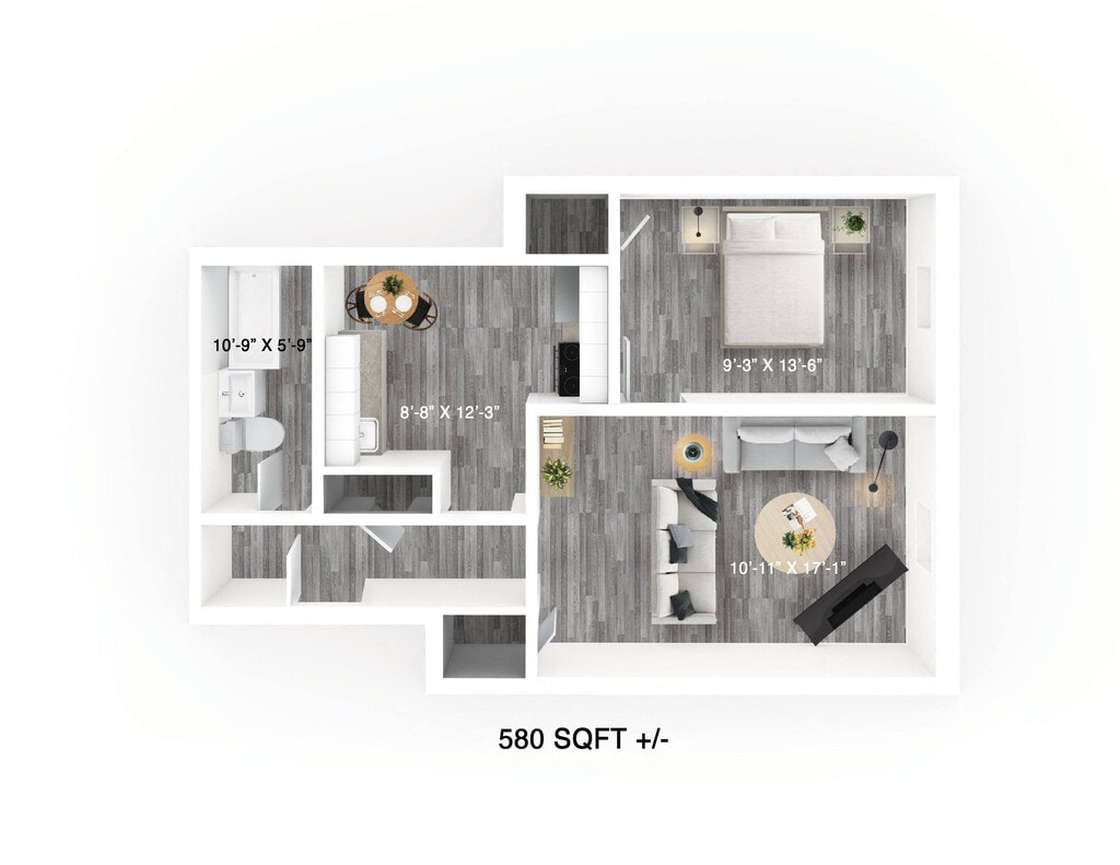 1 Bed, 1 Bath, 580 sq ftAvailable NowModel Gallery