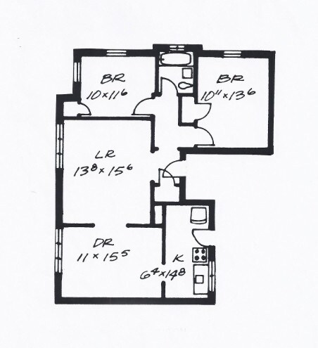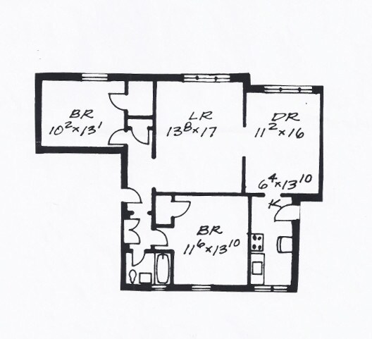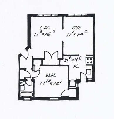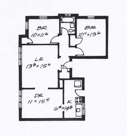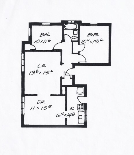 2 Bedroom - 1 Bathroom - Floorplan 2 ![]()