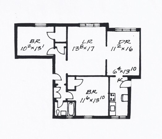 1 Bedroom - 1 Bathroom - Floorplan 10 2 Bedrooms